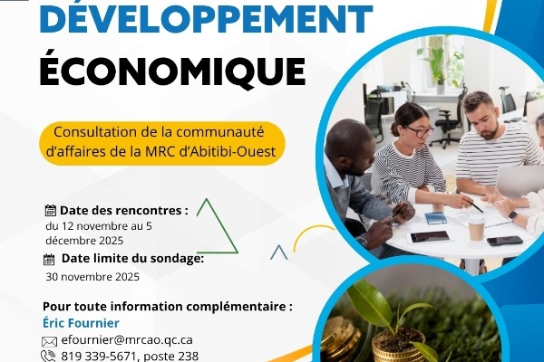 Une consultation auprès de la communauté d’affaires de la MRC d'Abitibi-Ouest est actuellement en cours.